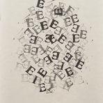 Tampones de letras y tinta negra sobre papel de imprenta.140 recortes de papel a tamaño de las ventanas de la galería en República.